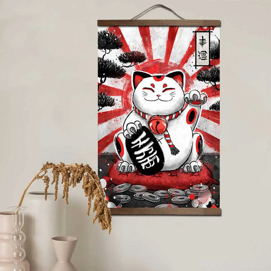 Tela Pôster Estilo Oriental Samurai Neko