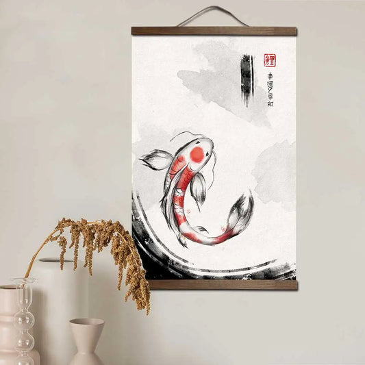 Tela Pôster Estilo Japonês Ukiyo-e Koi