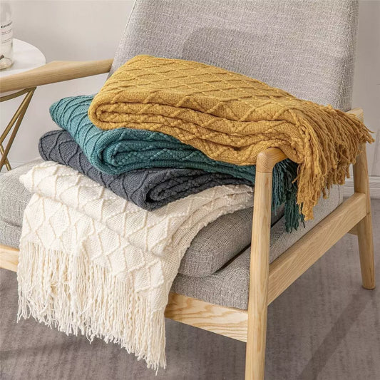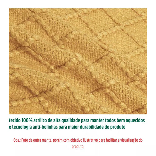 Manta Coberta Decorativa de Tricô Mostarda