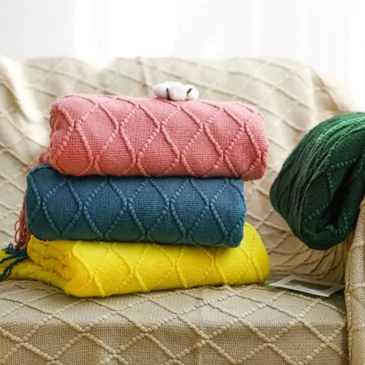 Manta Coberta Decorativa de Tricô Coral