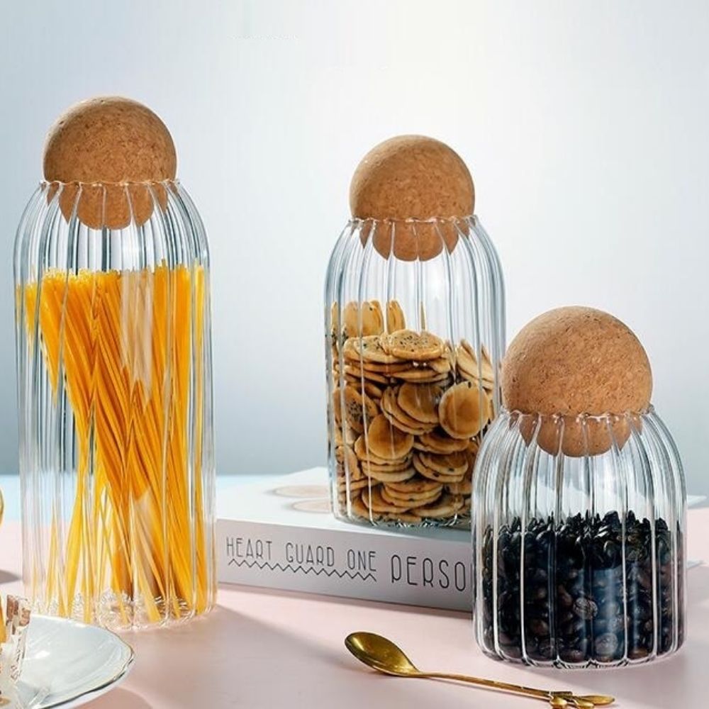 Pote Frasco de Vidro Canelado Tampa Esfera